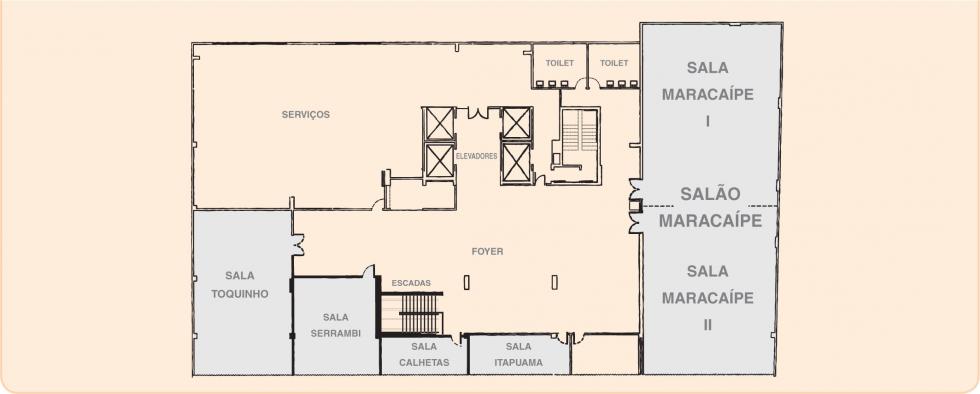 e três de apoio, podendo acomodar até 400 pessoas, em coquetel. O Foyer é