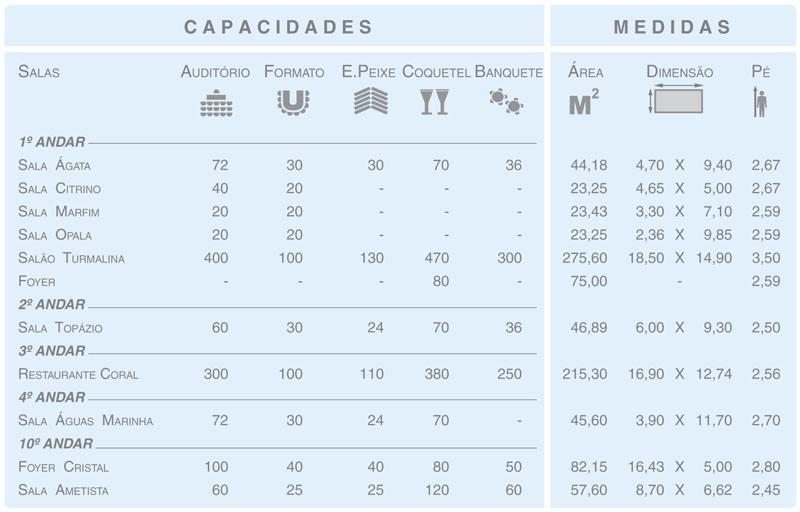 com capacidades variadas que vão de 20 a 400 pessoas.