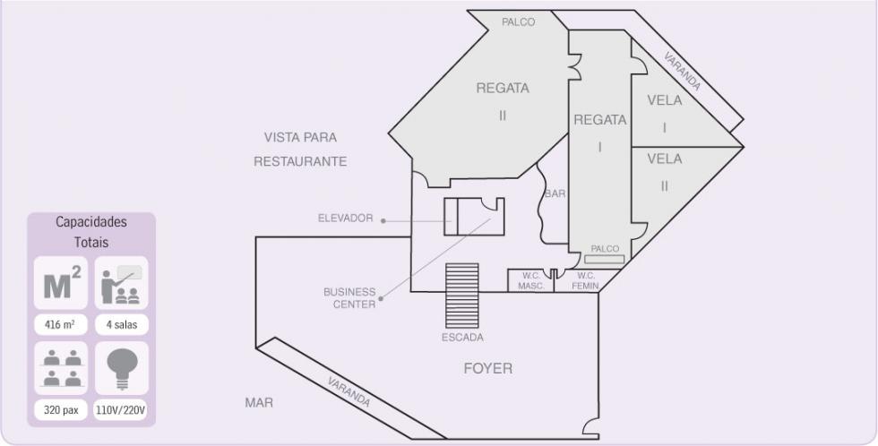 e duas de apoio e amplo Floyer, para recepções e coffee brakes,