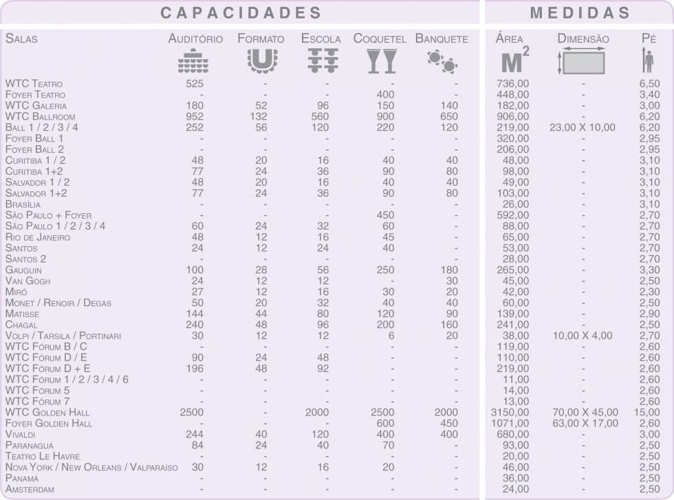 O WTC Events Center e o hotel, juntos, formam o maior complexo para eventos da América Latina. São aproximadamente 12 mil m2 - divididos em 60 espaços flexíveis, que podem acomodar eventos de micro e macro portes. O WTC Ballroom,