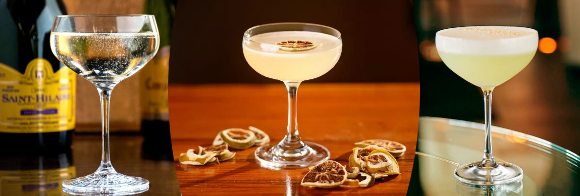 A taça em um formato de boca larga foi muito famosa quando era usada para servir champagne na corte Francesa. Naquela época tinha-se o hábito de molhar biscoito no champagne, por isso ficou conhecida também como taça “Biscoito”. Atualmente, é usada para servir drinques sem gelo de consumo rápido.